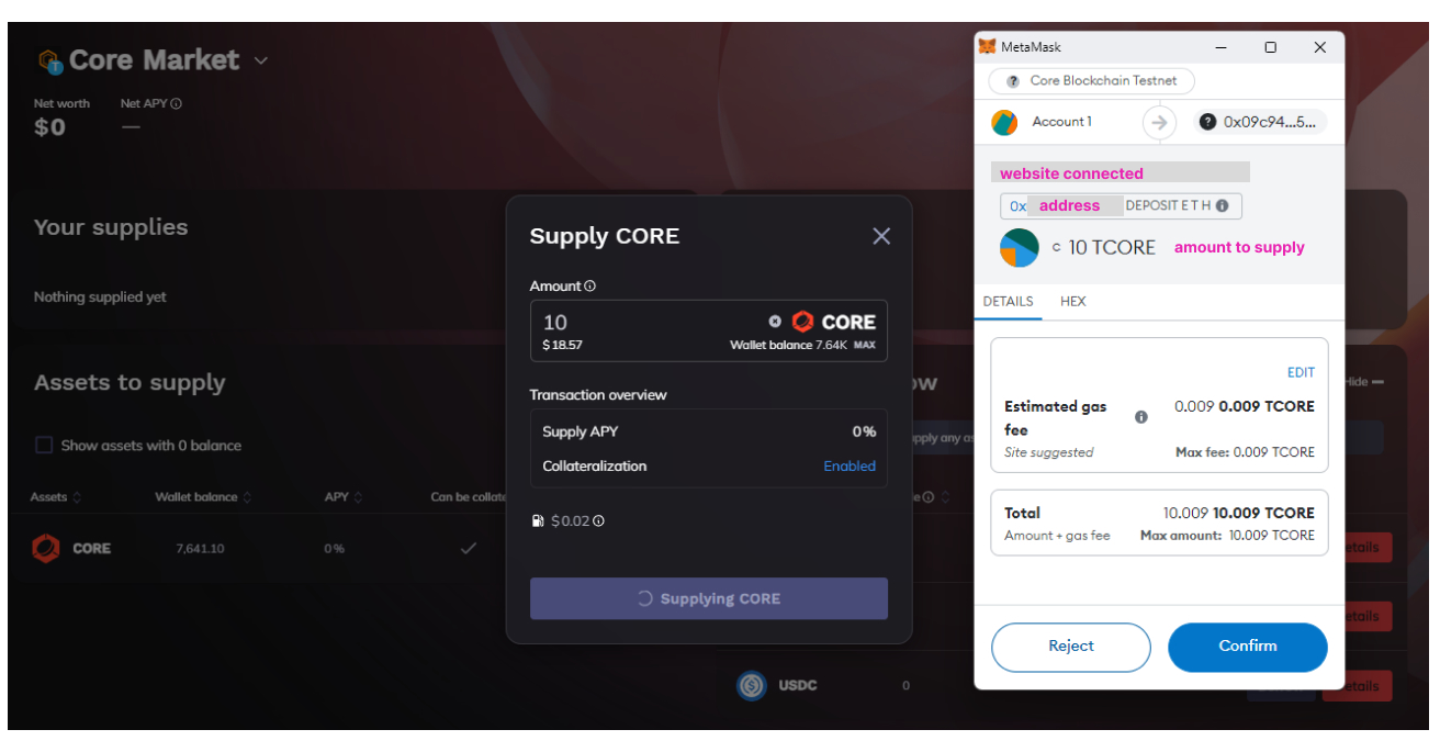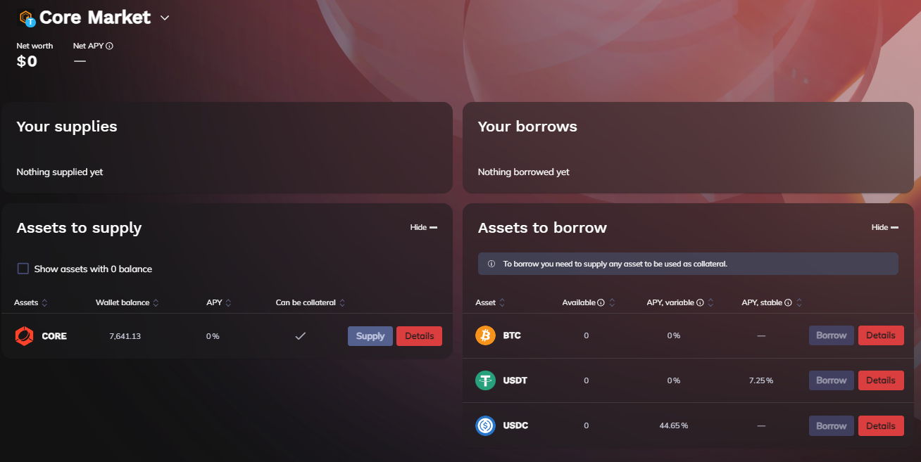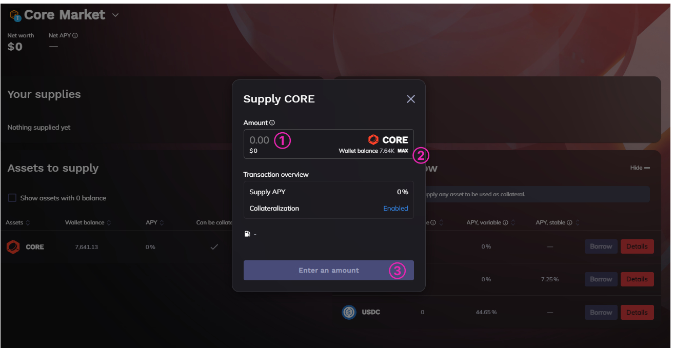 This step-by-step guide will show you how to deposit $CORE into Colend. Once you’ve learned this, you can easily deposit other assets in a similar way across all supported markets.