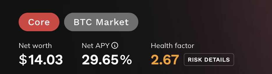 These include your net worth, your account’s net APY (the combined effect of all supply and borrow yields), and your Health Factor.